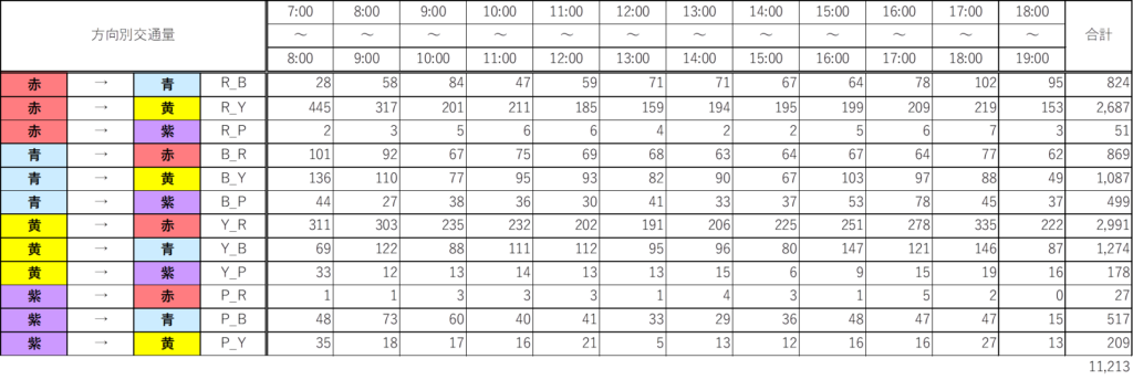 方向別時間帯別交通量の出力例