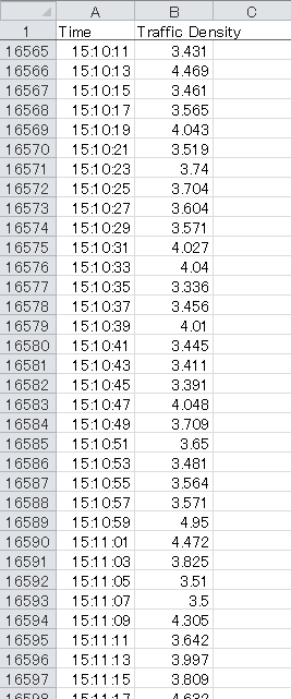 この渋滞指数(congestion_index)が例えば 10 ぐらいであれば、10台程度の車両がピタッと静止していることになります。